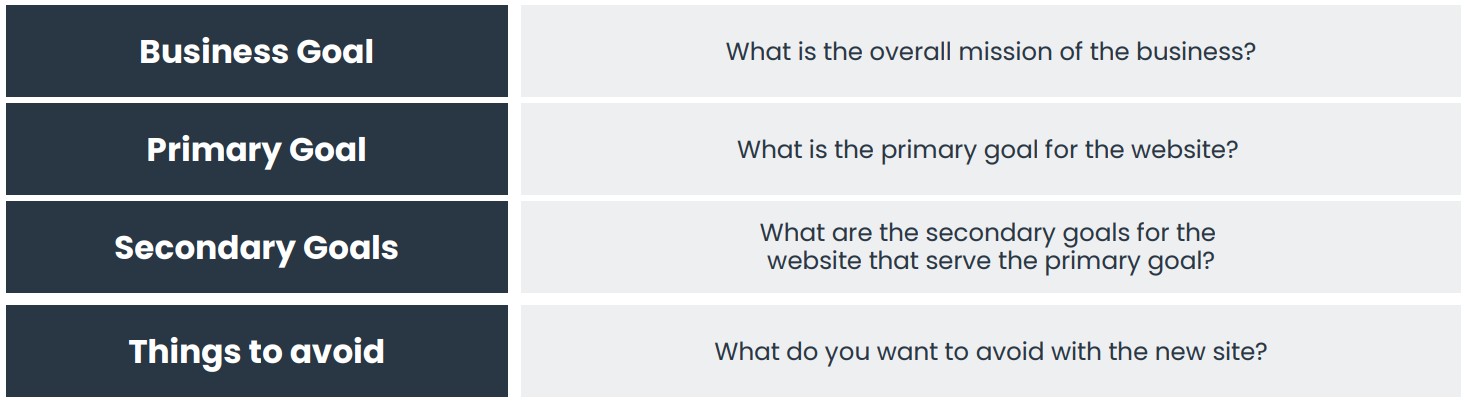 The key takeaway here is that your goals must be crystal clear – a better website is not a goal and that kind of vague objective will see you pay too much for a website that does not deliver.