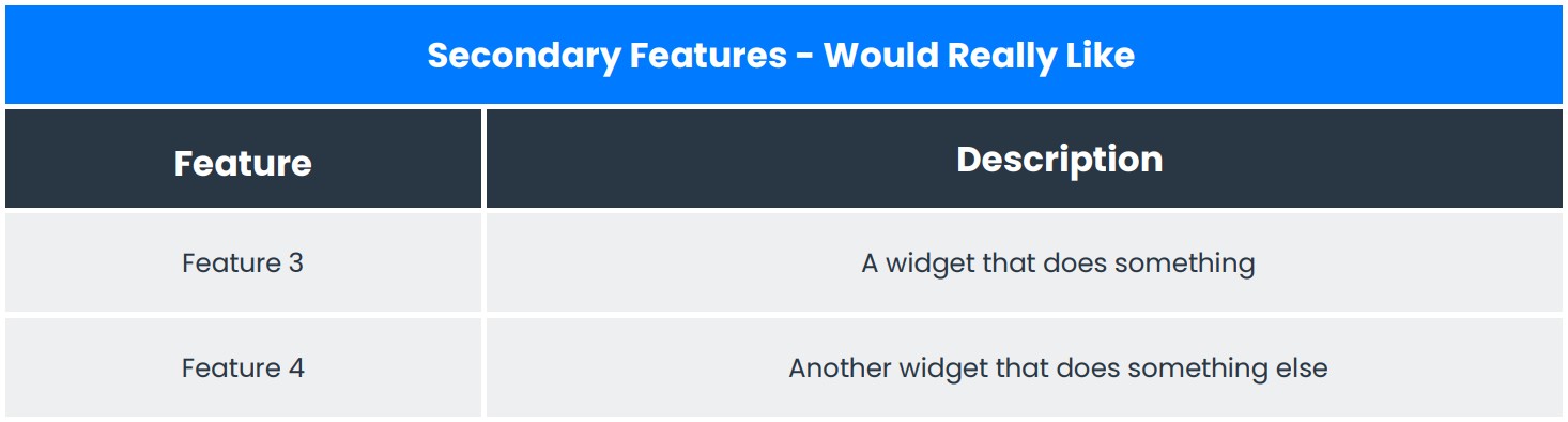 · Should Have – Secondary features