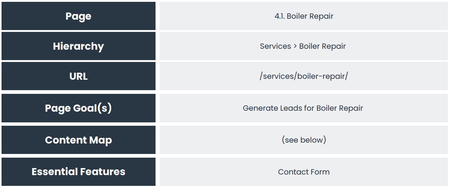 As before, this should be an interactive and research based approach. Look at your competitors, look at what they do well, what they don’t do so well, and map everything out for the pages on your site and document it all.