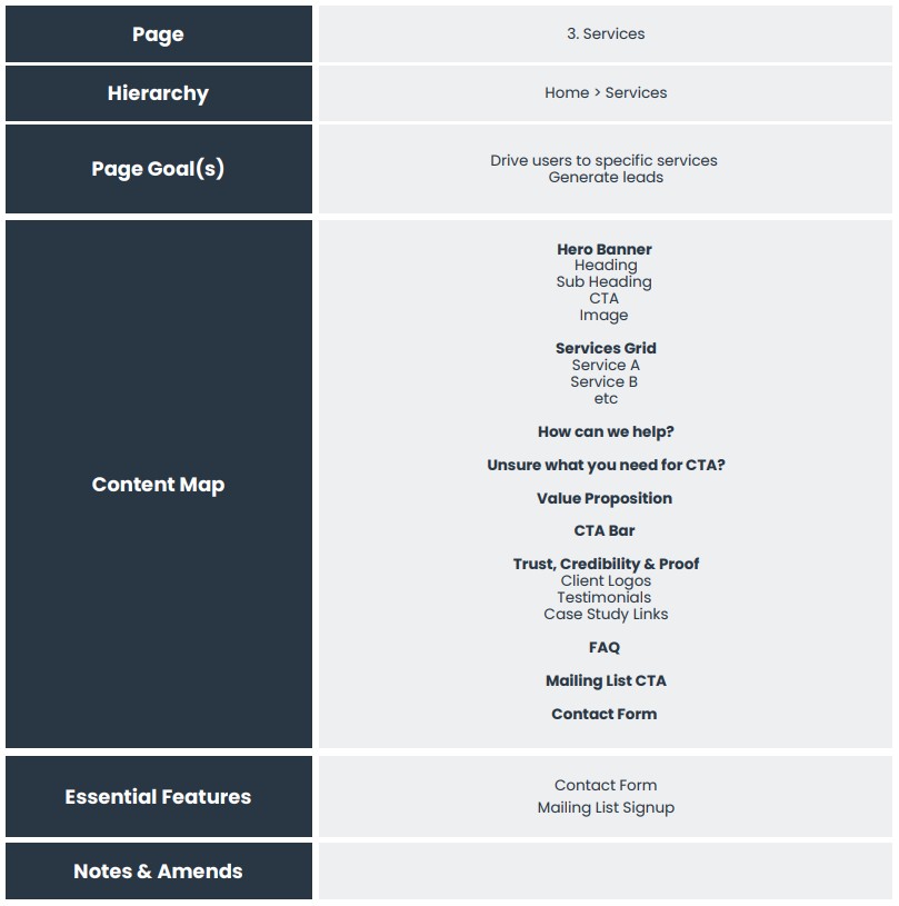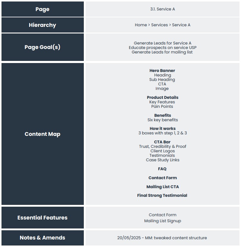 This makes the whole process so much easier and ensures you remain focused on the goals for the page and the site.